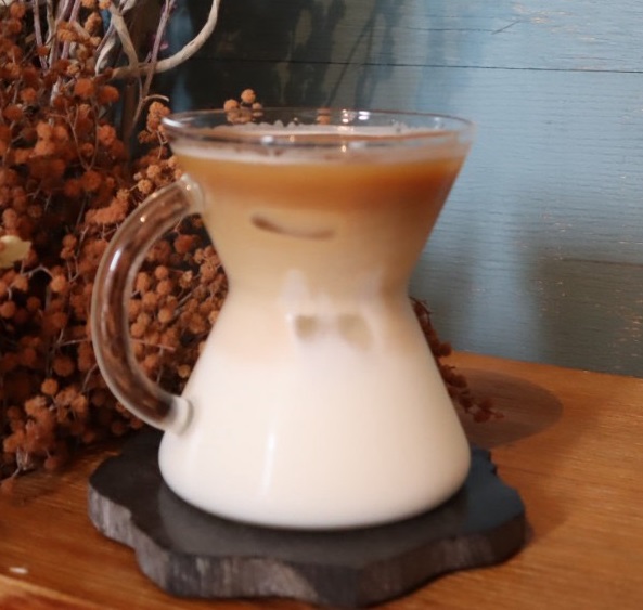 濃い目に抽出したコーヒーとミルクをおしゃれなコップでご提供します。